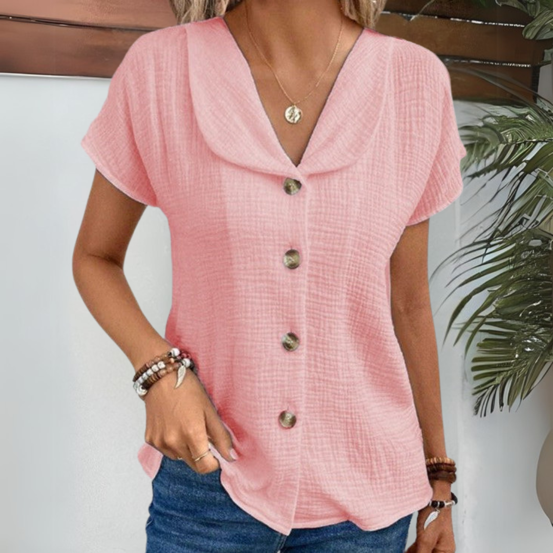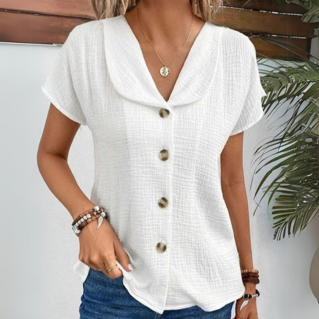 Eleganza e comfort nella Morbida Camicetta a Maniche Corte con Bottoni: la Camicetta da Donna perfetta per ogni occasione.