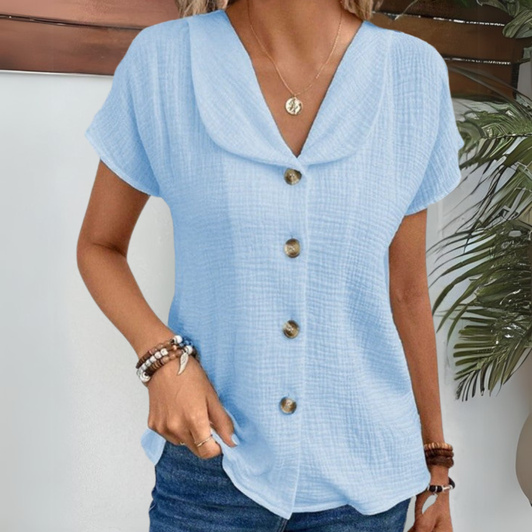 Luna Morbida Camicetta a Maniche Corte con Bottoni per Donna
